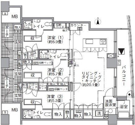 平米数 | 89.22m2 | 部屋詳細 | LDK20.1帖/洋室5.9帖/洋室5.7帖/洋室5.3帖 |