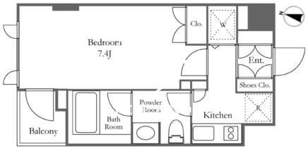 平米数 | 27.04m2 | 部屋詳細 | 洋室7.4帖/K2帖 |