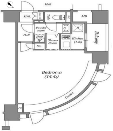 平米数 | 36.16m2 | 部屋詳細 | 洋室14.4帖/K1.8帖 |