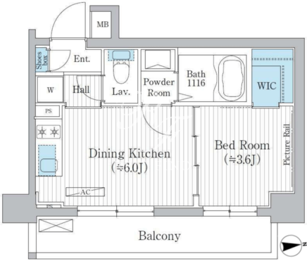 所在階/向き | 2階/東 | 間取り | 1DK+WIC |