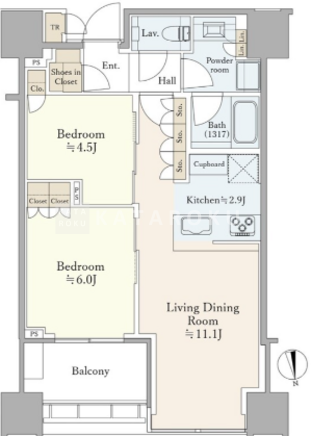 | 平米数 | 55.89m2 | 部屋詳細 | LDK14帖/洋室6帖/洋室4.5帖 |