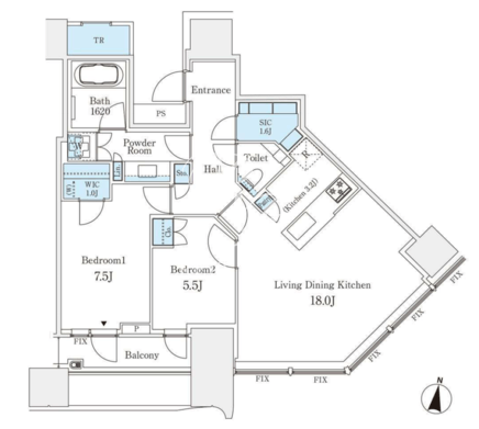 所在階/向き | 16階/南東 | 間取り | 2LDK+WIC+SIC |