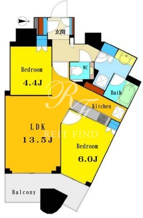 平米数 | 56.71m2 | 部屋詳細 | LDK13.5帖/洋室6帖/洋室4.4帖 |