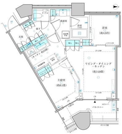 平米数 | 60.25m2 | 部屋詳細 | LDK17.7帖/洋室6.1帖/洋室4.5帖 |