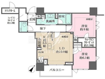 | 所在階/向き | 15階/南東 | 間取り | 2LDK+WIC+SIC |
