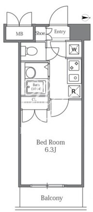 平米数 | 20.02m2 | 部屋詳細 | 洋室6.3帖/K2帖 |
