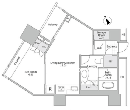 所在階/向き | 8階/北西 | 間取り | 1LDK+SIC |