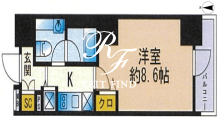 平米数 | 26.37m2 | 部屋詳細 | 洋室8.6帖/K2帖 |