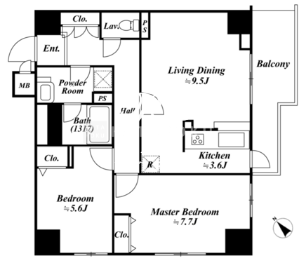 | 平米数 | 63.41m2 | 部屋詳細 | LDK13.1帖/洋室7.7帖/洋室5.6帖 |
