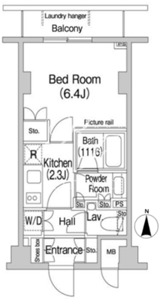 平米数 | 25.37m2 | 部屋詳細 | 洋室6.4帖/K2.3帖 |