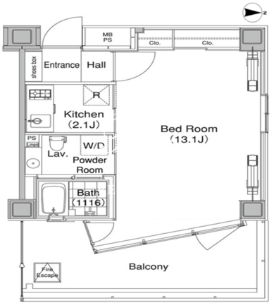 所在階/向き | 4階/東 | 間取り | 1K |
