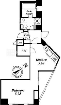 | 所在階/向き | 8階/北東 | 間取り | 1R+WIC |