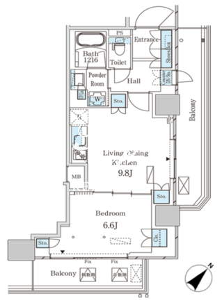 平米数 | 43.84m2 | 部屋詳細 | LDK9.8帖/洋室6.6帖 |