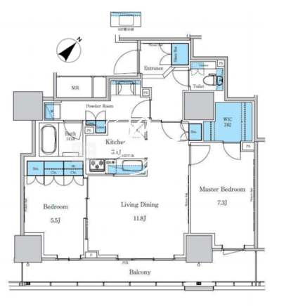 | 所在階/向き | 10階/南東 | 間取り | 2LDK+WIC |