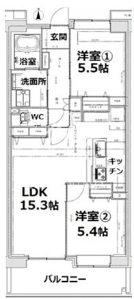 平米数 | 61.60m2 | 部屋詳細 | LDK15.3帖/洋室5.5帖/洋室5.4帖 |