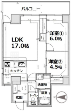 | 平米数 | 65.21m2 | 部屋詳細 | LDK17帖/洋室6帖/洋室4.5帖 |