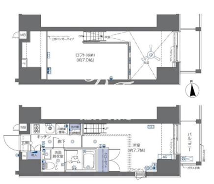 平米数 | 25.51m2 | 部屋詳細 | 洋室7.7帖/K2帖/ロフト7帖 |