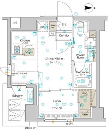 平米数 | 25.82m2 | 部屋詳細 | DK7.1帖/洋室2.7帖 |