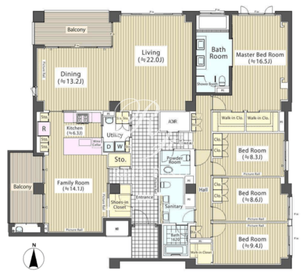 所在階/向き | 3階/北東 | 間取り | 4SLDK+WIC+SIC |