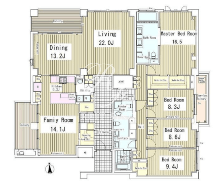 平米数 | 247.80m2 | 部屋詳細 | LDK35.2帖/洋室14.1帖/洋室16.5帖/洋室8.3帖/洋室8.6帖/洋室9.4帖 |