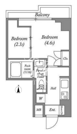平米数 | 25.20m2 | 部屋詳細 | 洋室4.6帖/洋室2.3帖 |