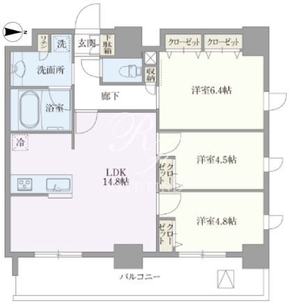 平米数 | 70.25m2 | 部屋詳細 | LDK14.8帖/洋室6.4帖/洋室4.8帖/洋室4.5帖 |