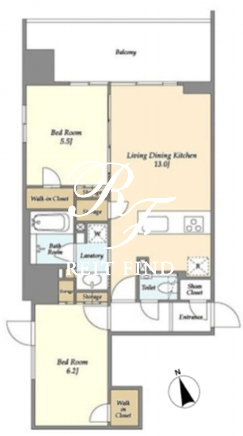 所在階/向き | 8階/北東 | 間取り | 2LDK+WIC+WIC |