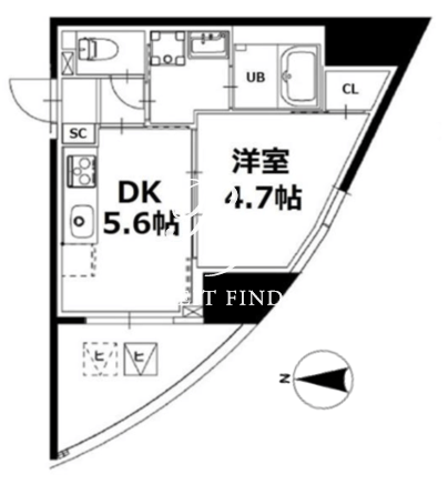 所在階/向き | 9階/西 | 間取り | 1DK |