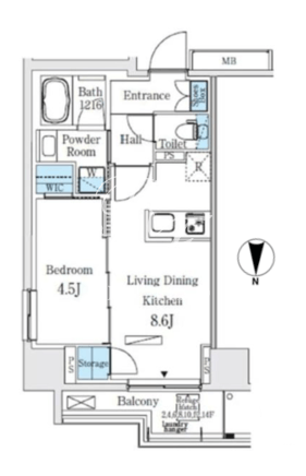所在階/向き | 2階/北 | 間取り | 1LDK+WIC |