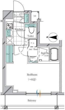 平米数 | 25.73m2 | 部屋詳細 | 洋室8.2帖/K2帖 |