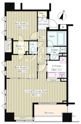 平米数 | 62.63m2 | 部屋詳細 | LDK15.8帖/洋室6.3帖/洋室5.2帖 |