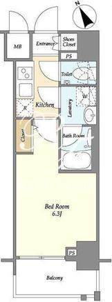 平米数 | 21.05m2 | 部屋詳細 | 洋室6.3帖/K2帖 |