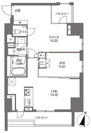 | 平米数 | 63.57m2 | 部屋詳細 | LDK14.3帖/洋室13.2帖/洋室5.4帖 |