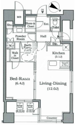 所在階/向き | 15階/北東 | 間取り | 1LDK+WIC |