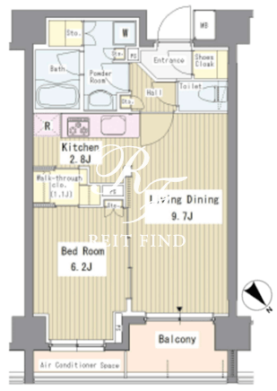 所在階/向き | 3階/北東 | 間取り | 1LDK+WIC+SIC |