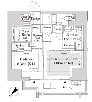 所在階/向き | 11階/北西 | 間取り | 1LDK+WIC+SIC |