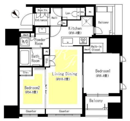 平米数 | 54.95m2 | 部屋詳細 | LDK13.2帖/洋室5.8帖/洋室4.3帖 |