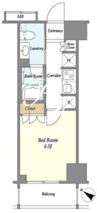 平米数 | 22.56m2 | 部屋詳細 | 洋室6帖/K2帖 |