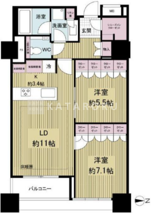| 平米数 | 82.96m2 | 部屋詳細 | LDK14.4帖/洋室7.1帖/洋室5.5帖 |