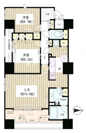 平米数 | 77.90m2 | 部屋詳細 | LDK15.5帖/洋室8.3帖/洋室6.7帖 |