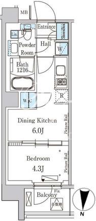 | 所在階/向き | 2階/北 | 間取り | 1DK+WIC |