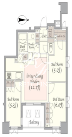 | 平米数 | 62.73m2 | 部屋詳細 | LDK12.1帖/洋室6帖/洋室5.3帖/洋室5帖 |