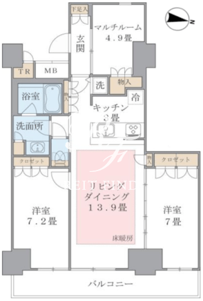 平米数 | 76.91m2 | 部屋詳細 | LDK16.9帖/洋室7.2帖/洋室7帖/サービスルーム4.9帖 |