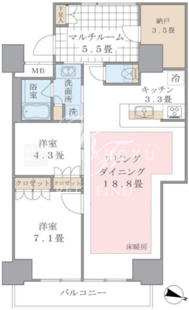 | 平米数 | 79.71m2 | 部屋詳細 | LDK22.1帖/洋室7.1帖/洋室4.3帖/その他5.5帖/DEN3.5帖 |