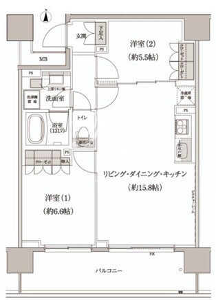 平米数 | 60.60m2 | 部屋詳細 | LDK15.8帖/洋室6.6帖/洋室5.5帖 |