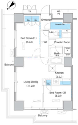 平米数 | 61.47m2 | 部屋詳細 | LDK14.4帖/洋室6.4帖/洋室5帖 |
