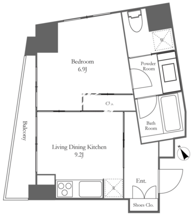 所在階/向き | 7階/西 | 間取り | 1LDK |