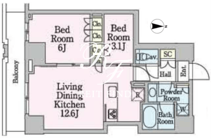 平米数 | 50.38m2 | 部屋詳細 | LDK12.6帖/洋室6帖/洋室3.1帖 |