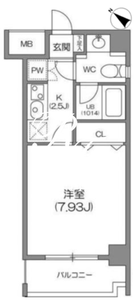 平米数 | 25.16m2 | 部屋詳細 | 洋室7.93帖/K2.5帖 |