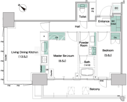 | 平米数 | 60.65m2 | 部屋詳細 | LDK13.5帖/洋室6.5帖/洋室5.6帖 |
